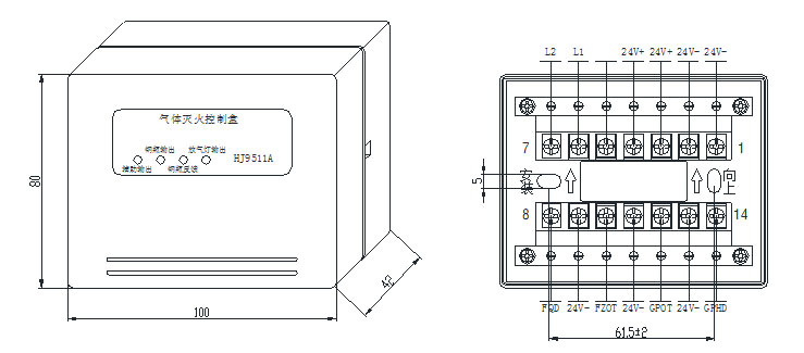 HJ9511A氣體滅火終端盒(以下簡稱終端盒),是HJ600C氣體滅火控制裝置的重要部件,應用時與氣體滅火設(shè)備的啟動電磁閥和壓力開關(guān)進行連接??赏瓿蓪怏w滅火啟動、反饋和線路檢測。