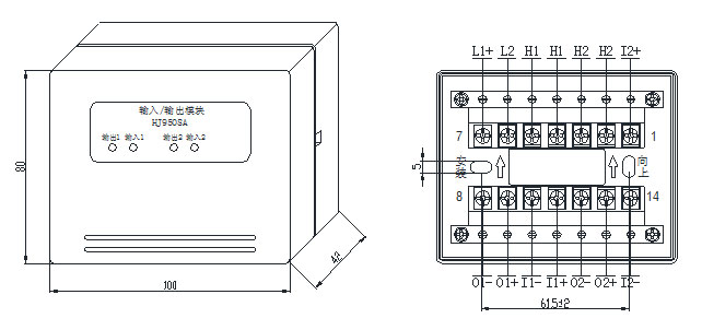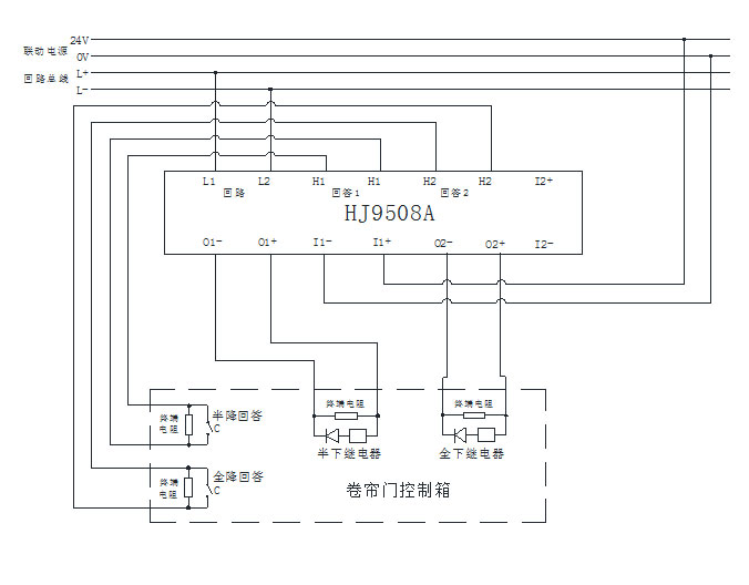 接線說(shuō)明: L1、L2為總線; H1、H1:反饋一輸入端子; H2、H2:反饋二輸入端子; O1+、O1-:動(dòng)作一輸出端子; I1+、I1-:動(dòng)作一DC24V輸入端子, I1+接+24V,I1-接0V; O2+、O2-:動(dòng)作二輸出端子; I2+、I2-:動(dòng)作二DC24V輸入端子,IN2+接+24V,IN2-接0V。